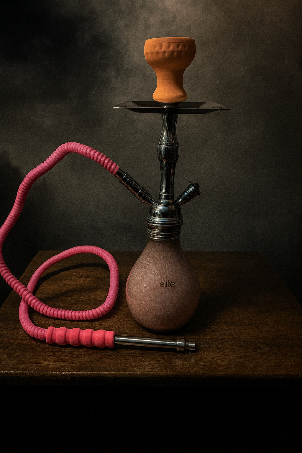 17in very cute Hookah comes in box with everything included. Bowl, tray, hookah top & base, tongs, & 1 hose with a tip holder attached.